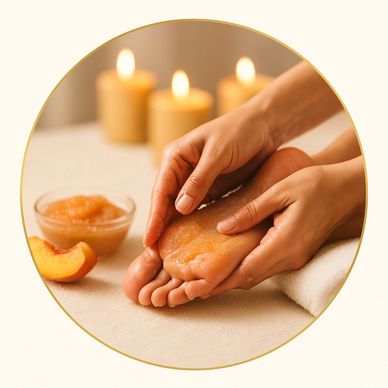 A rejuvenating foot treatment featuring our signature peach scrub, followed by a hot towel wrap and hydrating finish — designed to leave your feet soft, smooth, and refreshed.